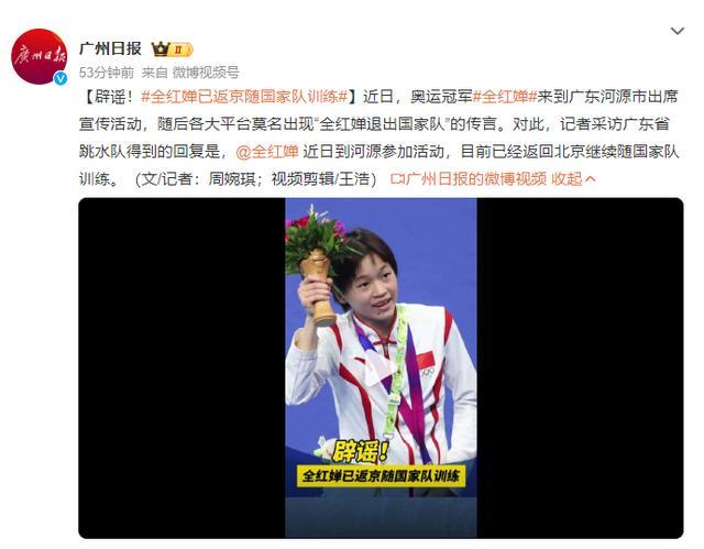 据悉,10月27日,全红婵在其微博账号上发文称“我要回我的家乡广东啦”,暗意要回广东河源插足品牌动作,随后各大平台难过出现“全红婵退出洋家队”的传言。传言激发网友庸碌关切,不少网友质疑此音讯为营销号训斥,纷纷暗意“不信谣不传谣”“不论如何齐不应该让全红婵这样优秀的孩子堕入言论的旋涡”。